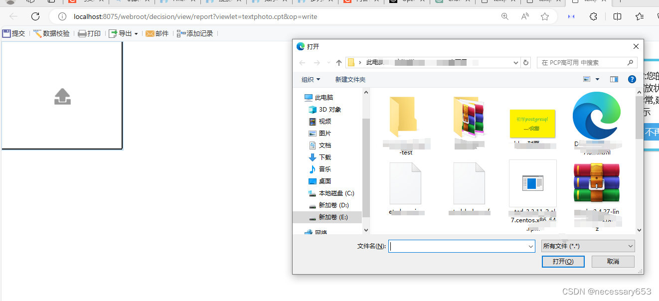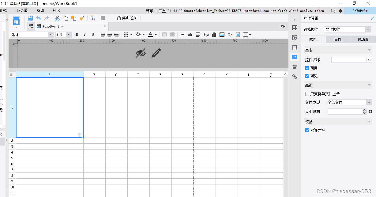 创建一个报表,拖入文件控件,用于文件控件的上传。