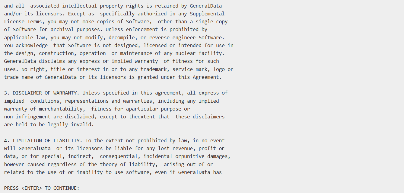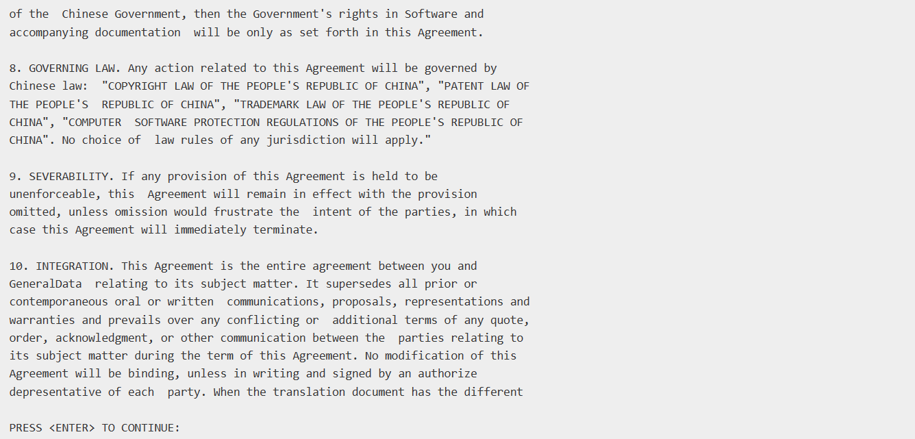 安装过程中,会显示产品的License,内容较长,在控制台的命令行方式中,可以连续按5次回车。在图形界面方式中,需要用鼠标拉动界面右侧的滚动条到底部,就可以点那个复选框,确认License了。