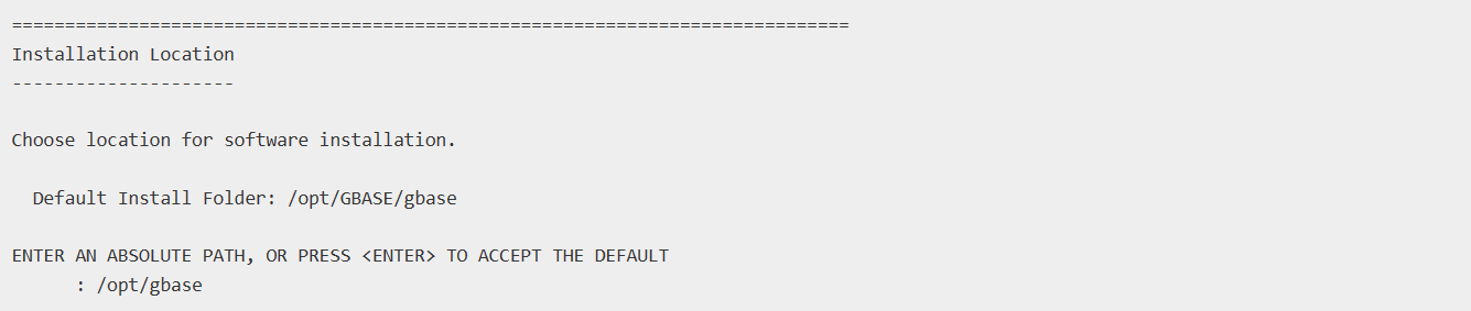 安装脚本询问GBase 8s的程序安装在哪个路径下,默认是我们之前安装时指定的路径。我们直接回车继续。