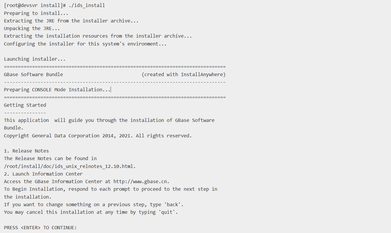 我们在root用户下,进入安装包目录,运行安装命令ids_install,启动安装程序。