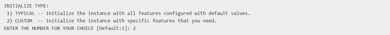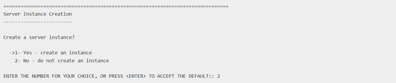 在安装过程中,可以自动创建一个数据库的实例。由于典型安装中创建的实例在配置上非常简单,不适合后期深入的学习GBase 8s,因此我们选择不创建实例,我们在安装后,可以手动执行一个脚本,方便了创建一个新的数据库实例。此处我们输入2。