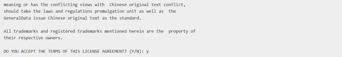 接受License,输入y,按回车开始安装。