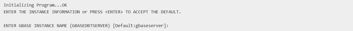 脚本默认的实例名称为gbaseserver,可以在冒号后面输入我们希望的名称,也可以直接回车,使用默认的实例名。