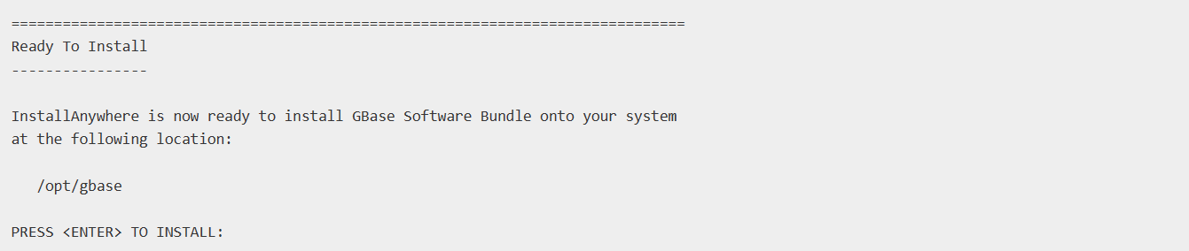 安装程序提示用户输入GBase 8s的安装路径。我们输入/opt/gbase。