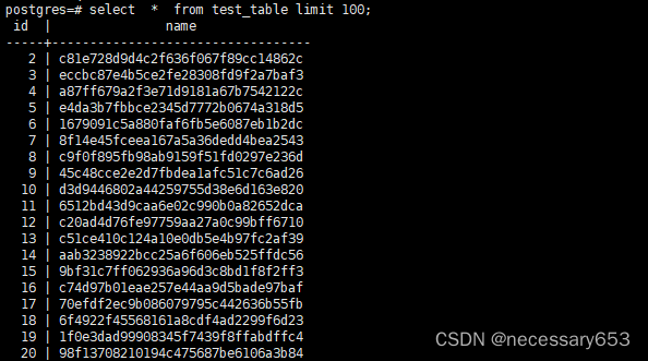 INSERT INTO test_table (id ,name ) select id , md5(id::text) from generate_series(2,80000) as id ;