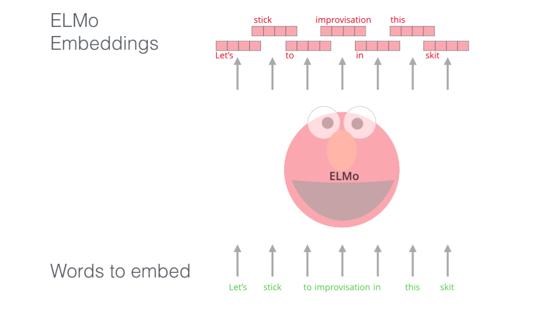 ELMo 通过训练,预测单词序列中的下一个词,从而获得了语言理解能力,这项任务被称为语言建模。要实现 ELMo 很方便,因为我们有大量文本数据,模型可以从这些数据中学习,而不需要额外的标签。