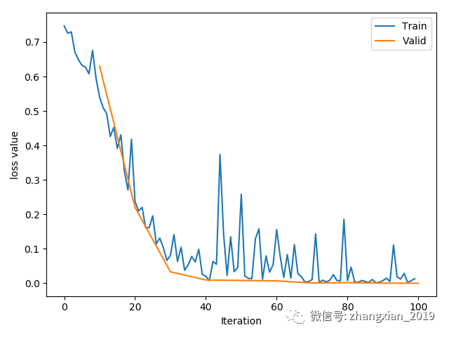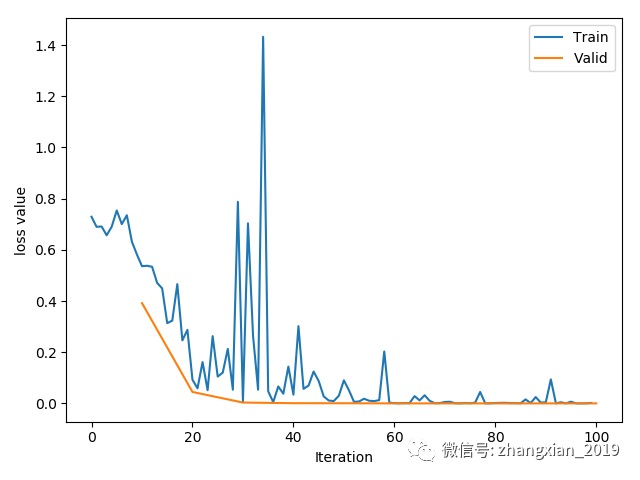 可以看到训练过程中,训练集的 loss 在中间激增到 1.4,不够稳定。