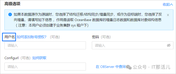 点击上方“IT那活儿”公众号--专注于企业全栈运维技术分享,不管IT什么活儿,干就完了!!! 可以在 OMS 控制台创建从 OceanBase 数据库迁移数据至 OceanBase 数据库同类型租户的数据迁移项目,通过结构迁移、全量迁移和增量同步,无缝迁移源端数据库中的存量业务数据和增量数据至目标端数据库。