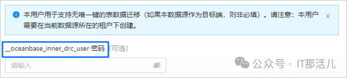 2.1 OceanBase 数据库迁移OceanBase 数据库需要创建两个用户- 一个在sys下创建drc(drc这个用户其他取其他用户名,但是一定要在sys下创建);