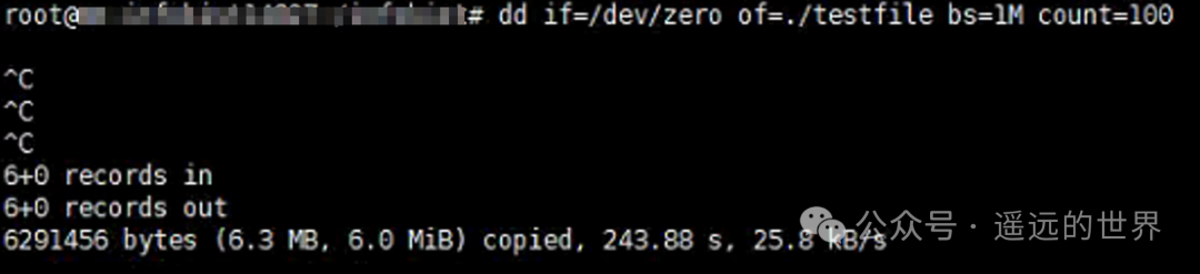 使用 下面的dd命令一次性向硬盘写入1GB数据,用于测量写入速度: