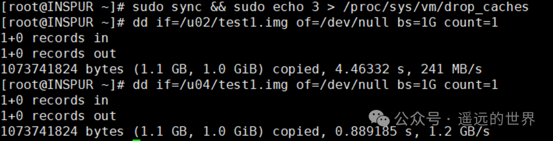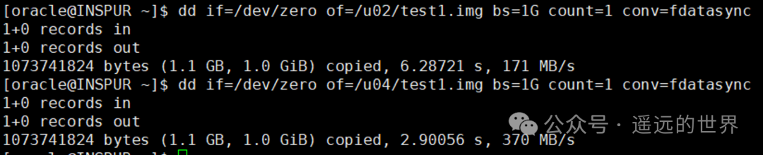 说明:“/u02” 位于 HDD,而 “/u04” 位于 SSD,可以看到SSD的磁盘写速度比HDD快大约1倍。