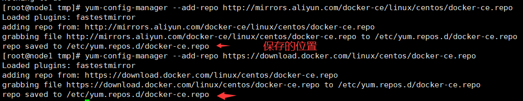 [root@node1 tmp]# yum-config-manager --add-repo http://mirrors.aliyun.com/docker-ce/linux/centos/docker-ce.repo