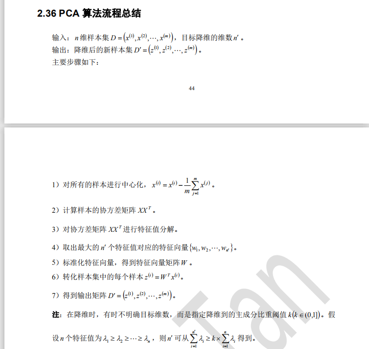 是一个对角矩阵,并且对角元素按从大到小依次排列,那么 P 的前 K 行就是要寻找的基,用 P 的前 K 行组成的矩阵乘以 X 就使得 X 从 N 维降到了 K 维并满足上述优化条件。