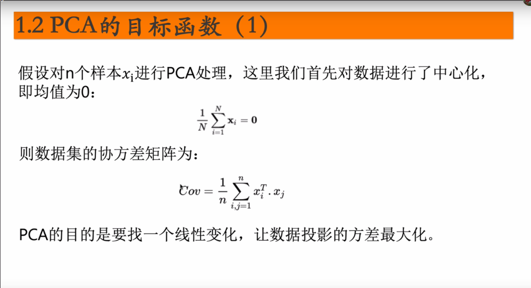 至此,我们得到了降维问题的优化目标:将一组 N 维向量降为 K 维,其目标是选择 K 个单位正交基,使得原始数据变换到这组基上后,各变量两两间协方差为 0,而变量方差则尽可能大(在正交的约束下,取最大的 K 个方差)。