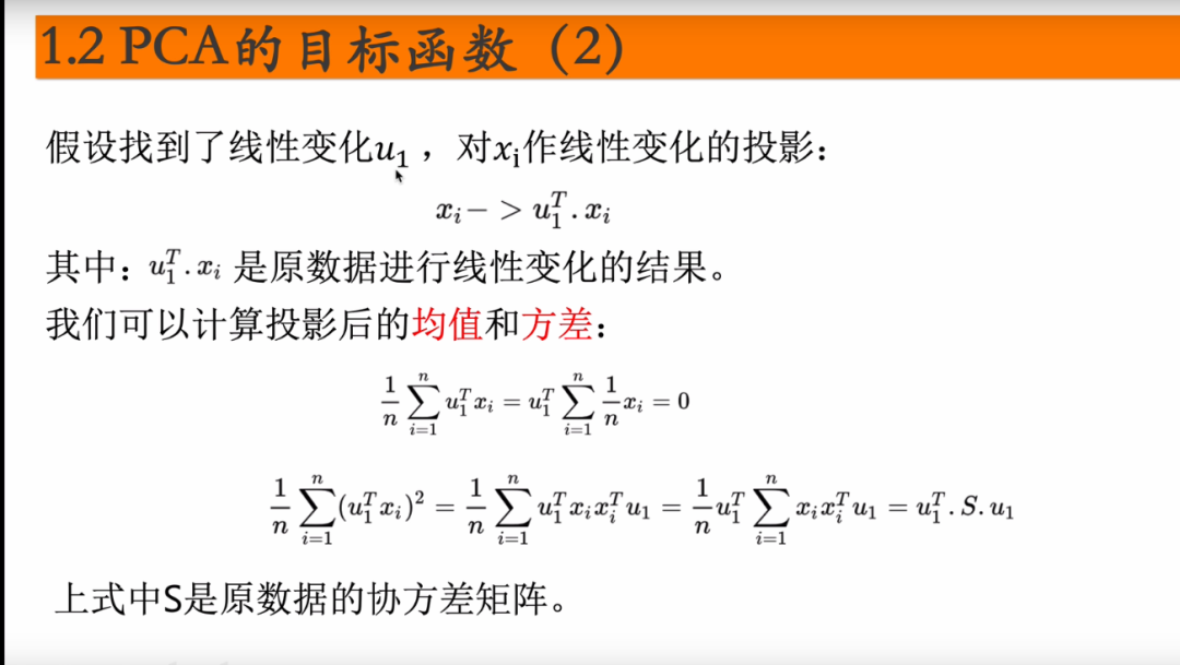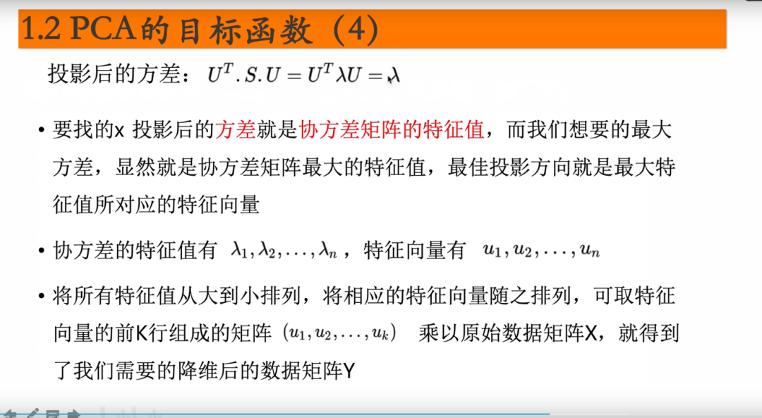 于是我们发现,x 投影后的方差就是协方差矩阵的特征值。我们要找到最大方差也就是协方差矩阵最大的特征值,最佳投影方向就是最大特征值所对应的特征向量,次佳就是第二大特征值对应的特征向量,以此类推。