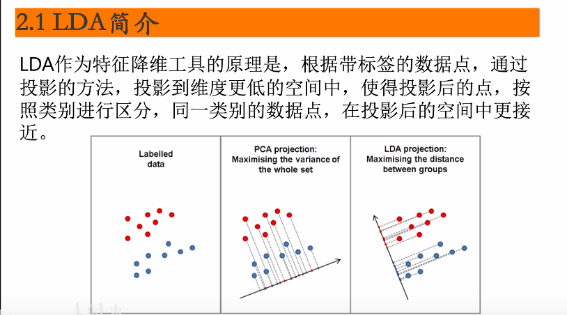 和 PCA 不考虑样本类别输出的无监督降维技术不同,LDA 是一种监督学习的降维技术, 数据集的每个样本有类别输出。