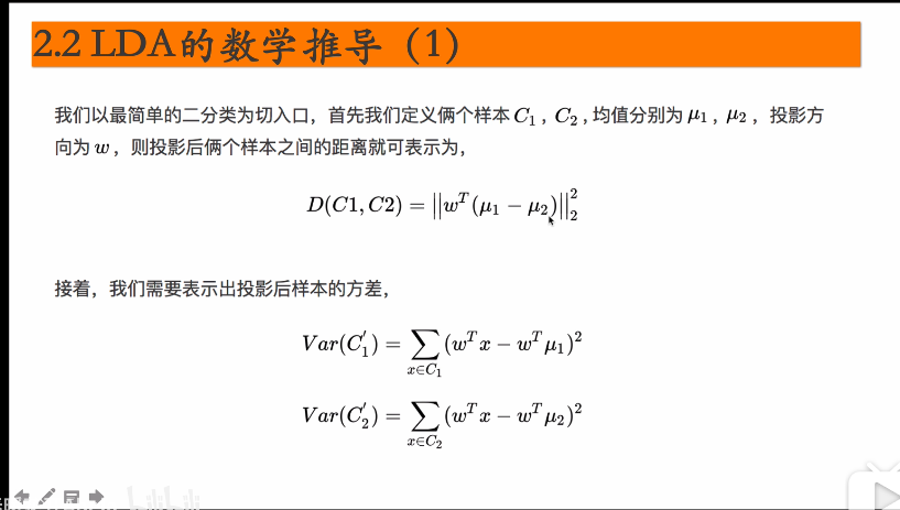 如果用一句话概括 LDA 思想,即“投影后类内方差最小,类间方差最大”