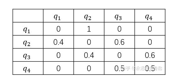 同样使用一个矩阵(称为状态转移矩阵)来表示上表
