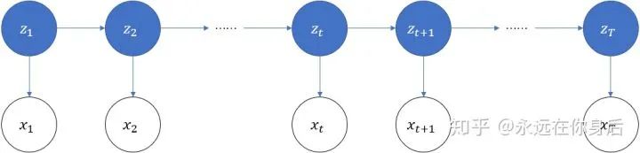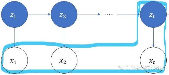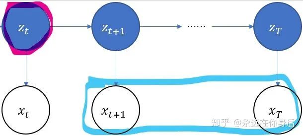 然后是蓝色部分,根据齐次马尔可夫假设(下文再引用该假设时称作假设1)