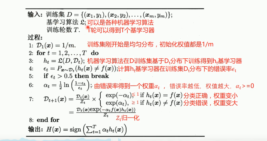 换而言之,误差率低的弱分类器在最终分类器中占的权重较大,否则较小。