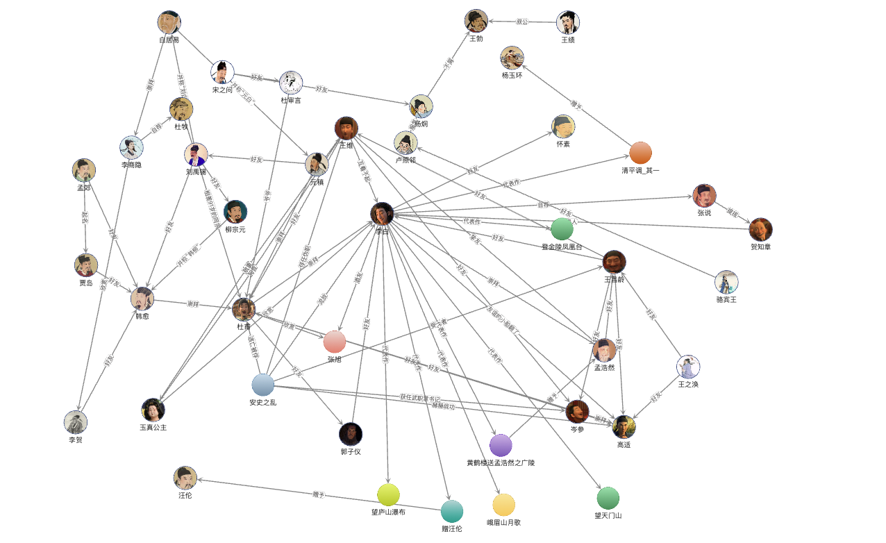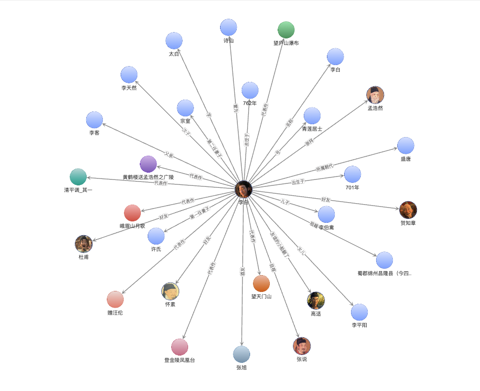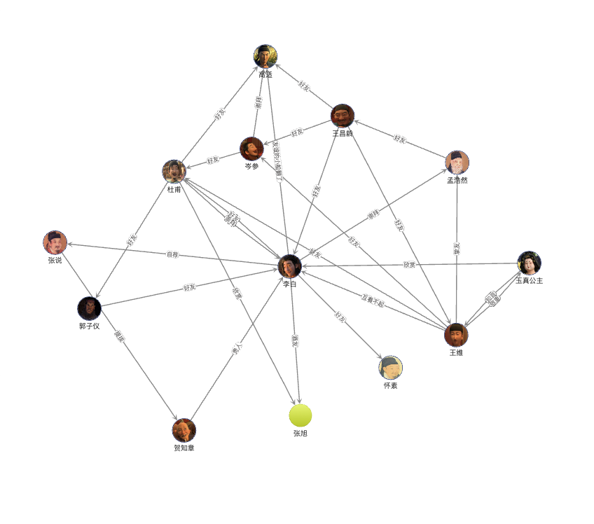 我们可自定义输入SPARQL语句,一目了然地看到李白“朋友圈”的社交关系。