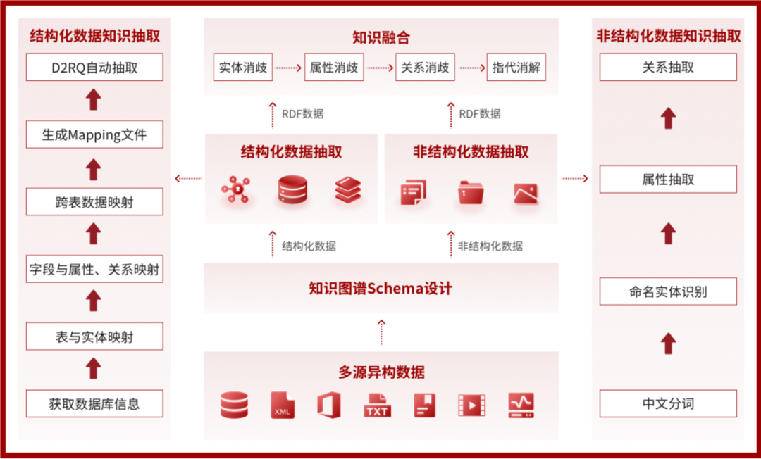 李白算是唐代当之无愧的第一大V,非常喜欢结交朋友。杜甫、王维、孟浩然、王昌龄等其他诗人也算是头部顶流。诗圣杜甫是李白的迷弟,特别崇拜李白;李白则崇拜孟浩然;李白和高适曾经是好友,后面友谊的小船翻了!那么如何通过一种简单、直观地的方式,了解李白和他的“朋友圈”呢?那就不得不提到知识图谱了! 知识图谱是以结构化的形式将节点通过关系相互连接起来,构成一张知识网络图。它可以把真实世界的各个场景抽象成图形,将信息表达成一种关系网络图。举个例子,下图就是一个简单的图,节点(node)用红色标出,通过黑色的边(edge)连接。节点可以表示实体和属性,边可以表示为实体-实体和实体-属性之间的关系,这种形式对处理复杂的关联关系有着天然的优势,也更接近人类认知世界的形式,为数据处理提供了一种更好的组织和管理能力。通常来说知识图谱的生命周期分为:构建、存储管理以及应用,下面我们逐一为大家演示介绍。如何利用现有的数据构建知识图谱一直是知识图谱领域的一个难题。知识图谱自动化构建平台gBuilder是通过结合NLP技术、机器学习、人工智能、知识图谱、图数据库等众多技术,打造的一个知识图谱自动化构建平台。我们可以利用知识图谱自动化构建平台将结构化数据通过D2RQ技术进行映射,无损转化成知识图谱。也可以通过编写数据抽取程序、抽取模型等方式对半结构化和非结构化的数据进行抽取。