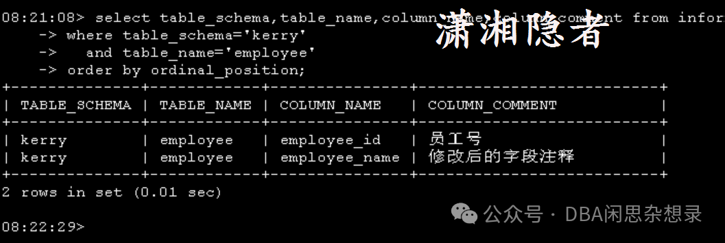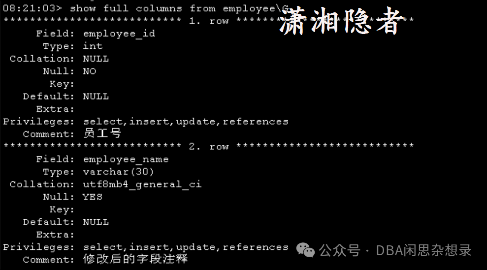 MySQL表修改字段的注释信息,可以使用上面的方法2.