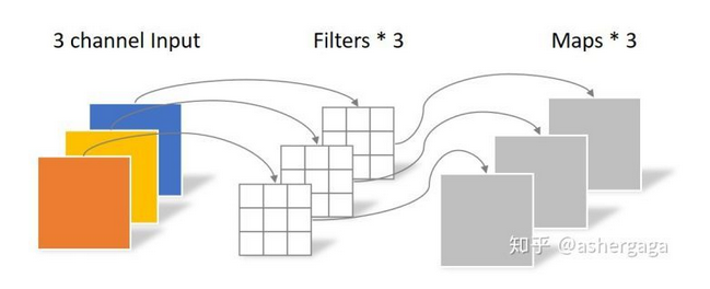 Depthwise Convolution的一个卷积核负责一个通道,一个通道只被一个卷积核卷积