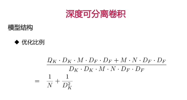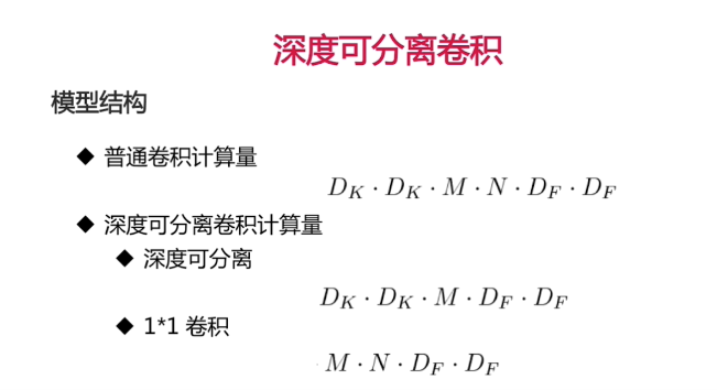 相同的输入,同样是得到4张Feature map,深度可分离卷积的参数个数是常规卷积的约1/3。因此,在参数量相同的前提下,采用Separable Convolution的神经网络层数可以做的更深。
