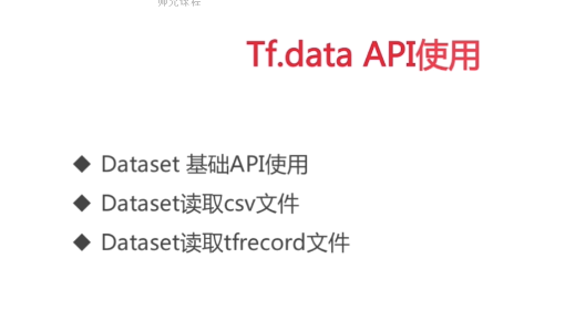Tensorflow中tf.data.Dataset是最常用的数据集类,我们可以使用这个类做转换数据、迭代数据等操作