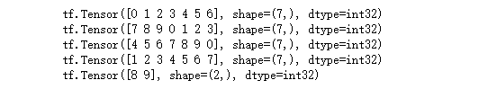 # 1. repeat epoch# 2. get batchdataset = dataset.repeat(3).batch(7)for item in dataset:print(item)