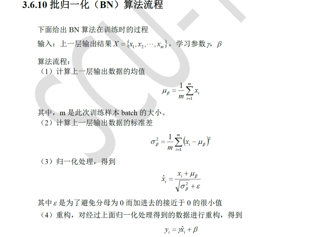 批归一化的 算法流程