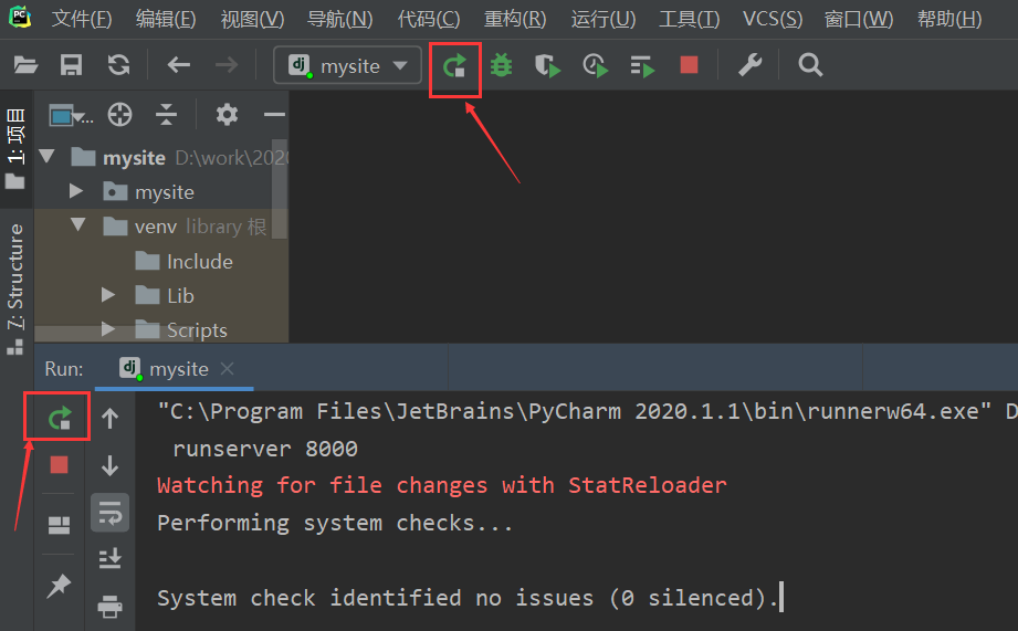 PS: 重启服务器的操作在Pycharm里只需要简单地点击按钮即可。