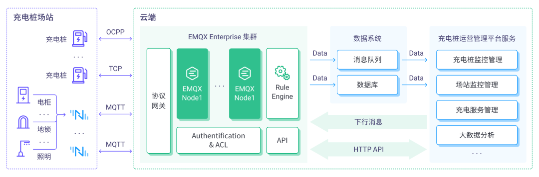 EMQX Enterprise (以下简称 EMQX) 是一个强大的企业级物联网消息平台,专为大规模部署和物联网应用中的高可靠性而设计。在充电桩运营管理场景中,EMQX 通过以下能力为用户带来收益: