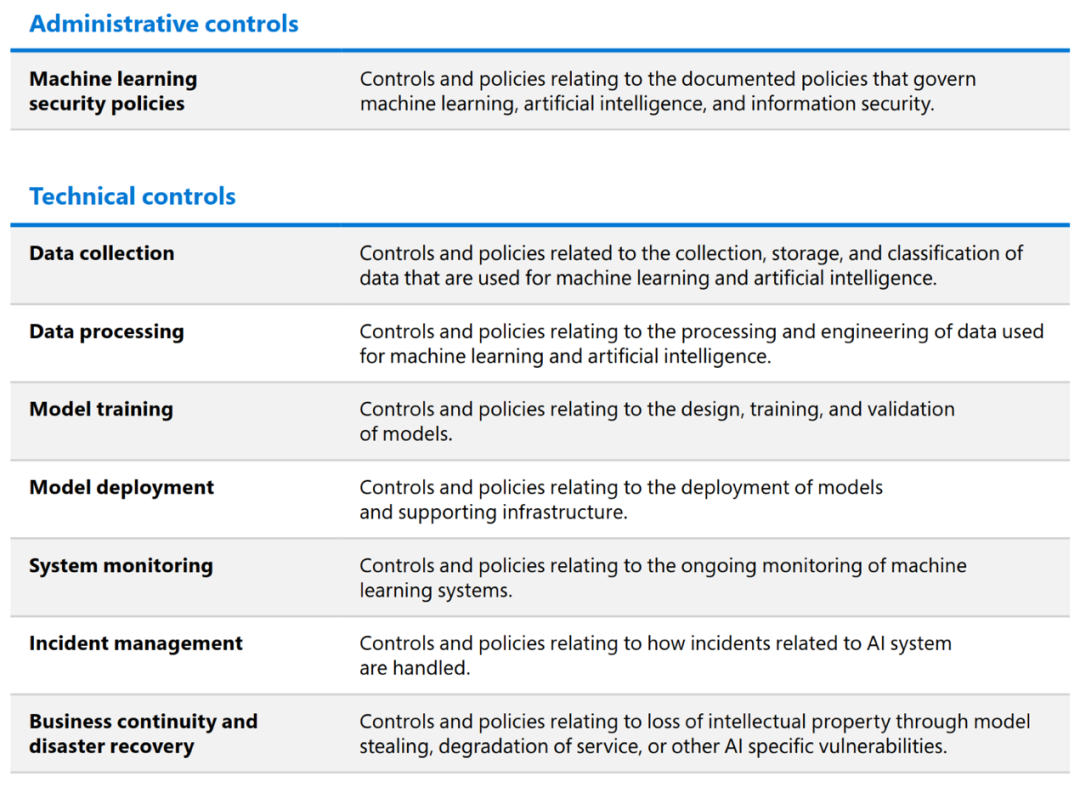 提供 AI 系统安全的全面视角。微软研究了企业生产环境中 AI 系统生命周期的每个元素:从数据收集、数据处理到模型部署。微软还考虑了 AI 供应链以及与 AI 系统相关的备份、恢复和应急计划的控制和政策。