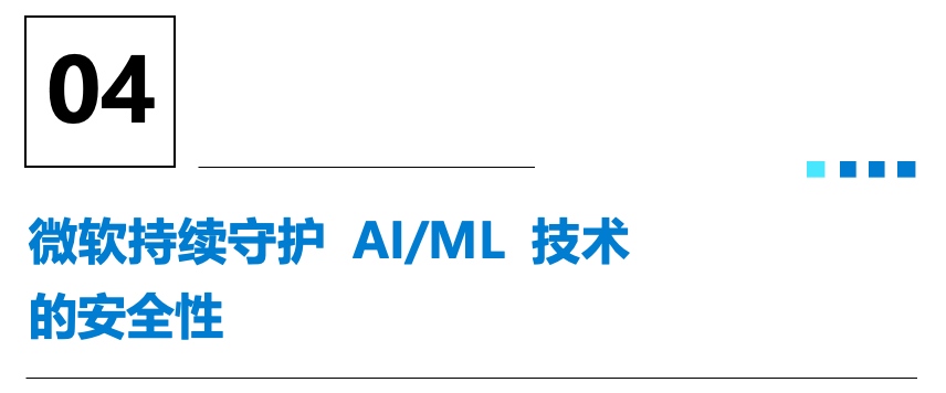 网络安全是一个持续进化的旅程,而不是一个持续稳定的结果。同时网络安全是与被保护的目标主体紧密关联的,它存在的唯一价值目标就是为了保护目标主体的安全性,因此网络安全的价值是需要依托目标主体所面临的安全威胁和风险来间接体现。AI 技术的持续发展,也同样催生了针对 AI 技术/系统的网络安全防护需求。在持续实现负责任的 AI 创新的同时,微软也会持续地采取高效且有效地安全措施加强对 AI/ML 技术和系统的网络安全防护,并与我们的全球生态系统和其他厂商合作,更好的保护整个 AI 技术和相关产业。