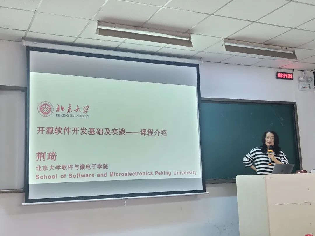 本次开课报告邀请到中国开源软件推进联盟刘澎副主席为大家做开题报告,课上刘主席分享了中国开源新趋势、新形态,开源代表的共享经济成功定律,已然成为创新的主要源泉、社会协作的主要模式。