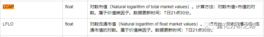 LCAP 对数市值 这个比较好理解 表示股票的总市值大小