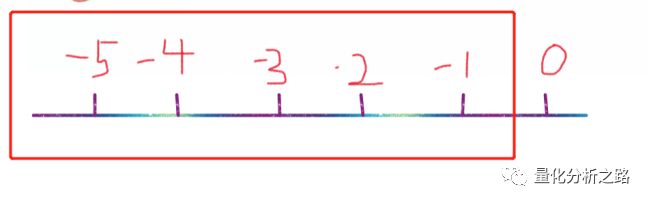 以5日均线为例,0为回测日 为了防止未来数据,我们取前五日的收盘价价求均值
