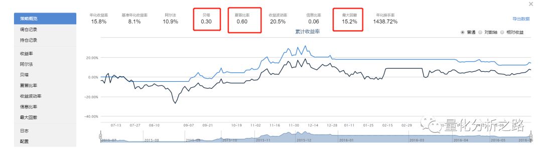 我们看到 还有一些夏普率 贝塔 回撤等数据 后面再讲解