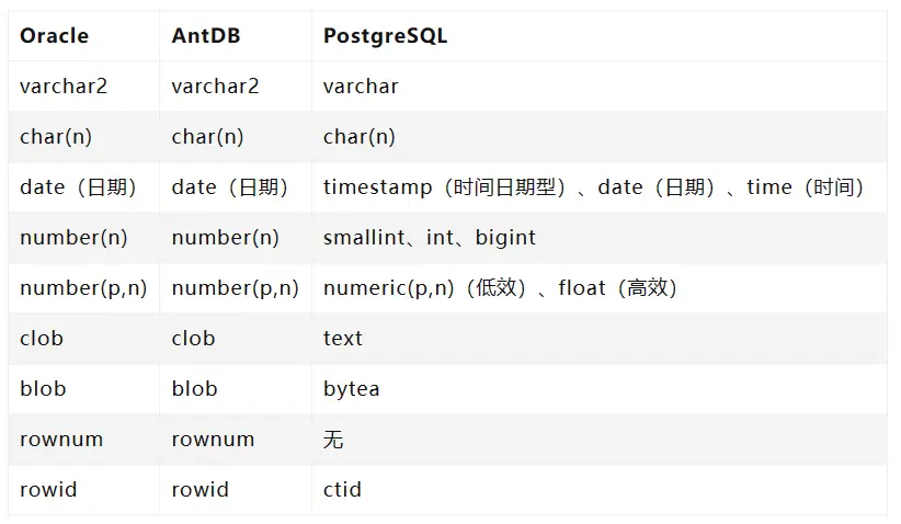 AntDB与Oracle数据库的兼容性包括:Oracle语法兼容、函数兼容、系统表/视图兼容、存储过程和触发器兼容、数据类型兼容、 OCI和JDBC调用接口兼容、管理包兼容、 rowid/rownum和dual虚表等。基于高度的兼容特性,可以实现AntDB和Oracle的异构数据库容灾实现上线初期两套数据库并行运行一段时间。