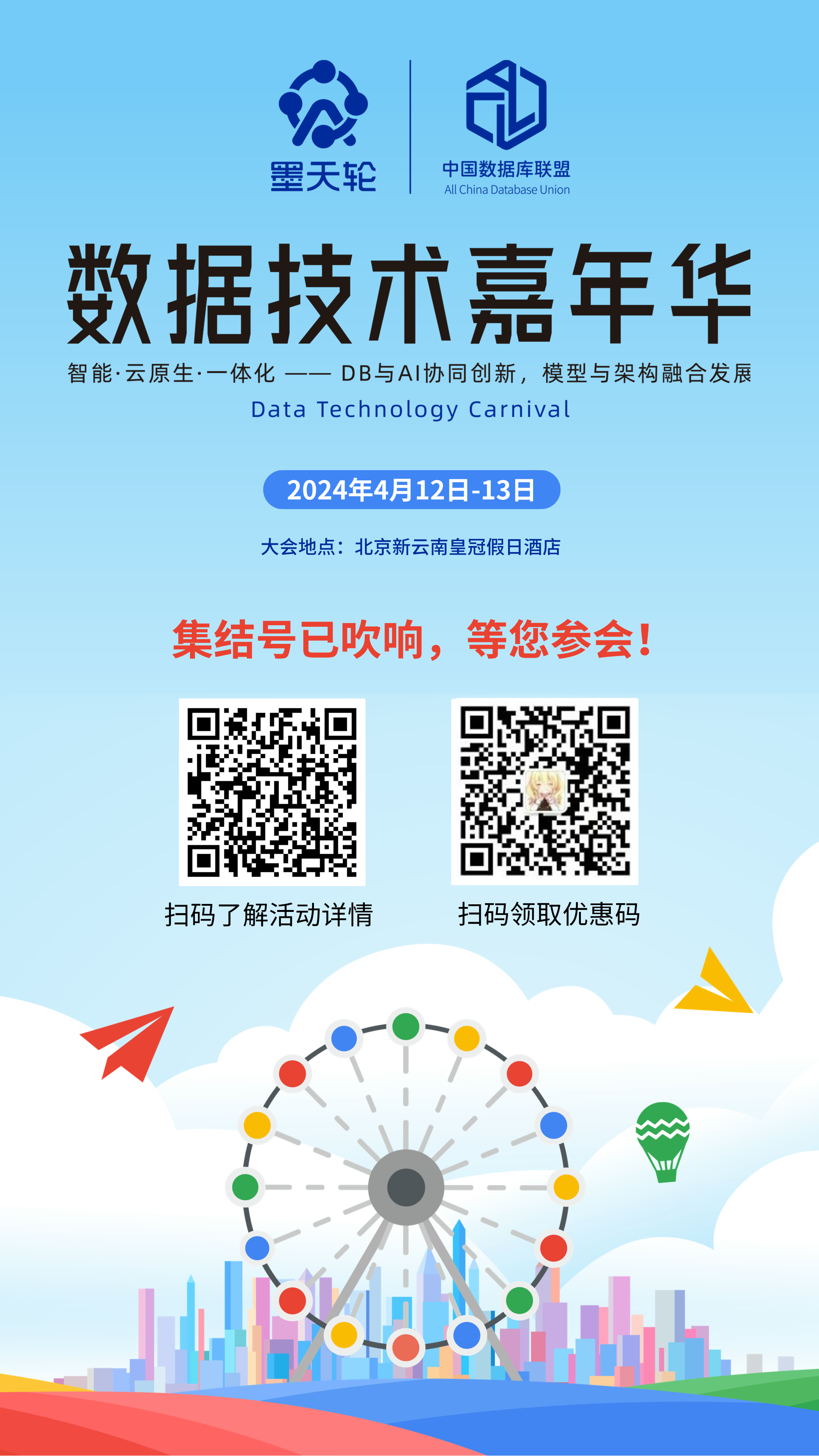 由墨天轮数据社区及中国数据库联盟(ACDU)主办的第十三届『数据技术嘉年华』(DTC 2024) 将于4月12-13日在北京新云南皇冠假日酒店盛大开启。本次嘉年华以“智能·云原生·一体化——DB与AI协同创新,模型与架构融合发展”为主题,汇聚80余位行业杰出技术领袖、学术精英、行业实践者、生态布道者,将带来1+12场精彩绝伦的主题演讲,现在让我们一探究竟!