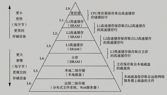 以下两幅图来自网络,方便了解计算机多级存储的层次结构和读写速度比较