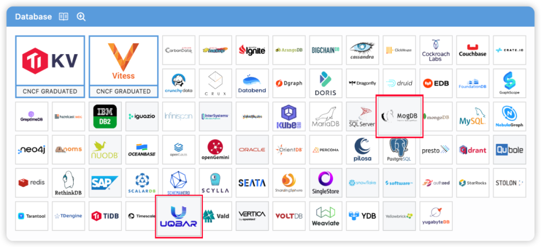 近日,云和恩墨企业级关系型数据库 MogDB 与超融合时序数据库 Uqbar 正式进入CNCF Landscape(云原生计算基金会全景图)。CNCF Landscape是CNCF(云原生计算基金会)维护的一个重要项目,旨在为企业构建云原生体系提供选型参考,为云原生应用者提供一个资源地图,从云原生的层次结构以及不同的功能组成上,帮助企业和开发人员快速了解云原生体系的全貌。此次 MogDB 和 Uqbar 双双入选并被CNCF Landscape收录在“App Definition and Development - Database”板块,标志着这两款数据库的容器化部署能力、容器化数据库管理能力,以及云和恩墨在容器层面的技术积累已经获得CNCF的认可,成为云原生实践体系的组成部分。App Definition and Development - Database(图源https://landscape.cncf.io/)