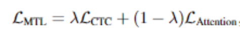 模型利用CTC和attention的优点,在encoder输出上加入CTC。损失函数是CTC和attention损失函数的加权和:
