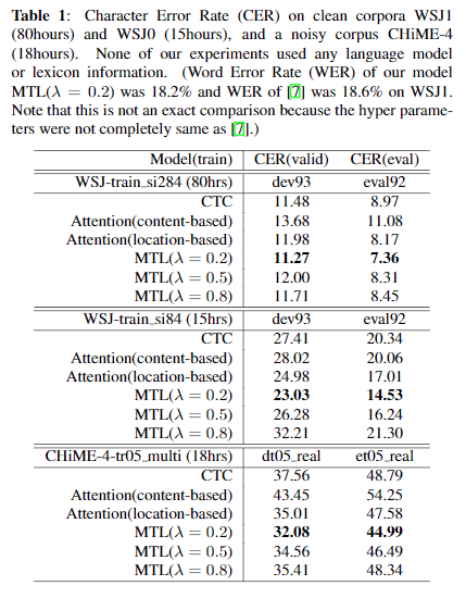 优于单独的CTC或者Attention。