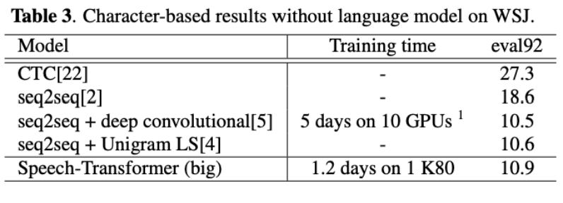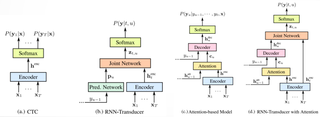 结合之前介绍的CTC、Transducer模型,和本次基于Attention的模型, 已经囊括了目前端到端模型的全貌。它们之间的性能比较怎么样呢?