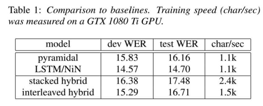 stacked/interleaved hybrid: 本论文两种不同位置信息算法,从结果看WER和原结构相当,只是计算度加快了。