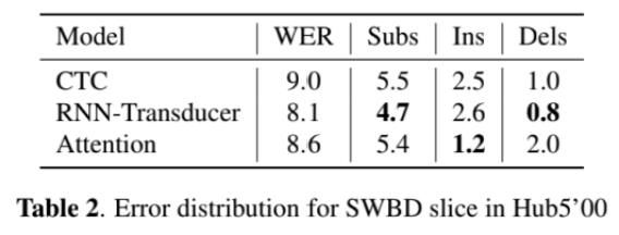 实验在SWBD上测试,Transducer模型取得的结果最好。