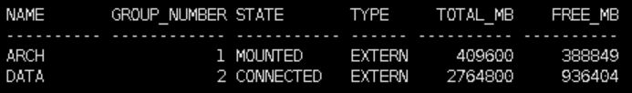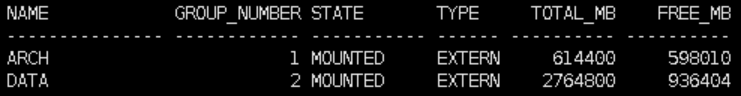 SQL> select name,group_number,state,type,total_mb,free_mb from v$asm_diskgroup;